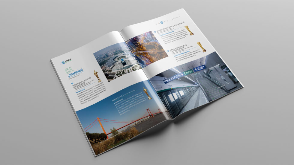 項目背景:武漢匯科質(zhì)量檢測有限責任公司前身為1984年成立的市政工程實(shí)驗室,公司成立于2006年,擁有建工檢測資質(zhì)6大項,共400余個(gè)檢測參數,工程勘察乙級資質(zhì)4大項、測繪乙級資質(zhì)、排水管道與評估資質(zhì),匯科公司始終致力于建設工程的質(zhì)量檢測和技術(shù)創(chuàng )新,持續推進(jìn)產(chǎn)學(xué)研應用轉化,至今已為數以千計的建設工程項目提供優(yōu)質(zhì)檢測服務(wù),并且為建設單位提供多樣化的安全文明標準化產(chǎn)品和服務(wù)。 匯科公司從上世紀80年代末已開(kāi)展見(jiàn)證取樣檢測,現業(yè)務(wù)領(lǐng)域已逐漸從單一的見(jiàn)證取樣檢測資質(zhì),拓展到建設工程檢測各方面,構筑了工程檢測、勘察領(lǐng)域、智慧檢測領(lǐng)域、協(xié)同發(fā)展衍生領(lǐng)域四大業(yè)務(wù)板塊。匯科公司前身實(shí)驗室曾獲得2004年度湖北省建設工程質(zhì)量檢測先進(jìn)示范站、匯科公司擁有AAA企業(yè)信用等級證書(shū),榮評過(guò)市、省、全國“守合同重信用企業(yè)”、2018-2019年度武漢建筑工程質(zhì)量檢測機構“五星級檢測單位”、全國高新技術(shù)企業(yè)、武漢建筑業(yè)“抗疫先進(jìn)企業(yè)”等榮譽(yù)。目前,匯科公司正在強化建設工程全產(chǎn)業(yè)鏈服務(wù)能力,未來(lái),檢測公司將繼續開(kāi)拓消防、房屋安全鑒定等領(lǐng)域,并進(jìn)一步推進(jìn)產(chǎn)學(xué)研應用轉化和智慧城市運維平臺建設,爭做智慧檢測專(zhuān)家。艾的爾承接其畫(huà)冊設計制作,成立品牌設計小組,與企業(yè)進(jìn)行深入溝通,明確企業(yè)對于畫(huà)冊設計的需求,封面封底采用藍色為主體色,藍色寓意穩重、大氣、誠信。將企業(yè)簡(jiǎn)介、核心設備、團隊建設展現出來(lái)。